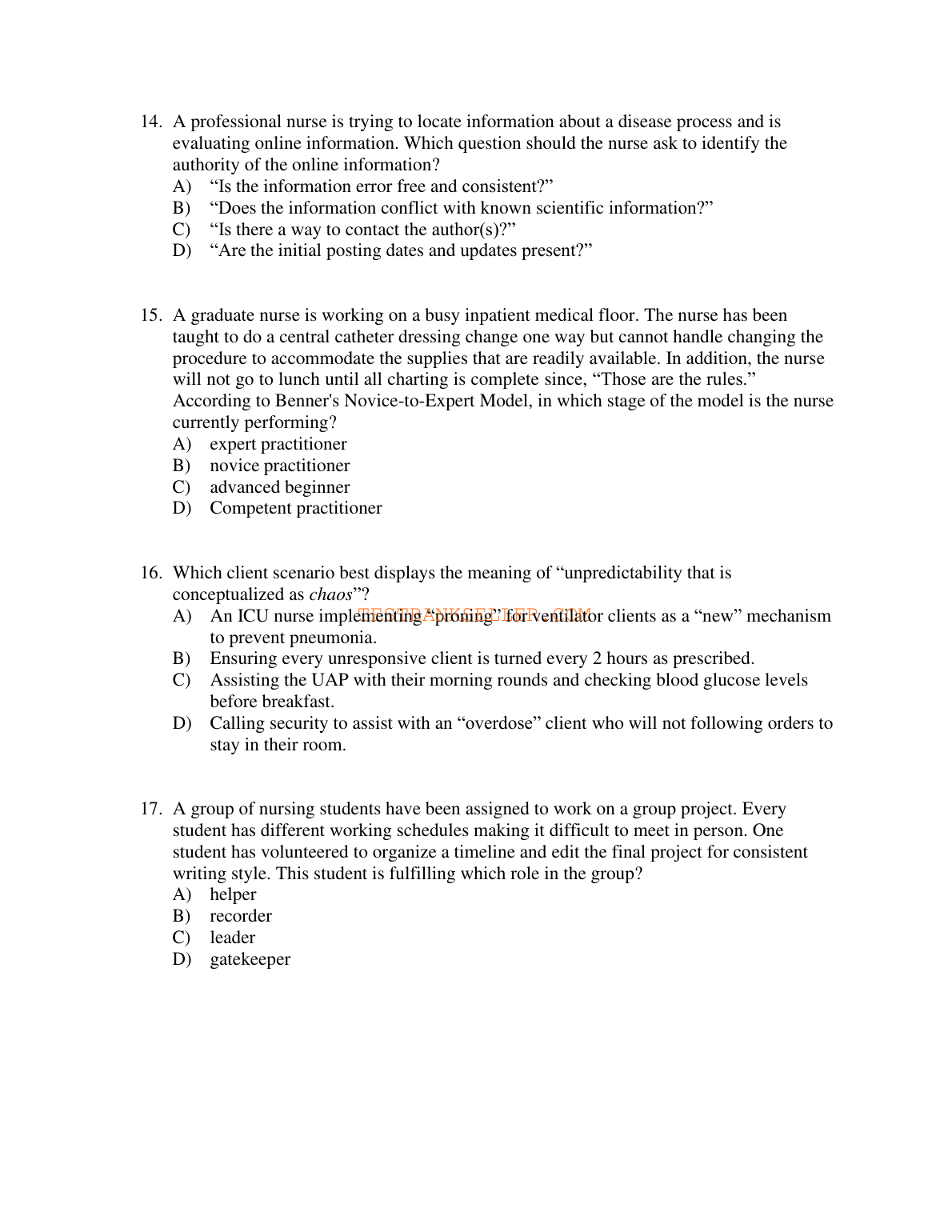 Leddy And Peppers Professional Nursing 9th Edition Hood Test Bank