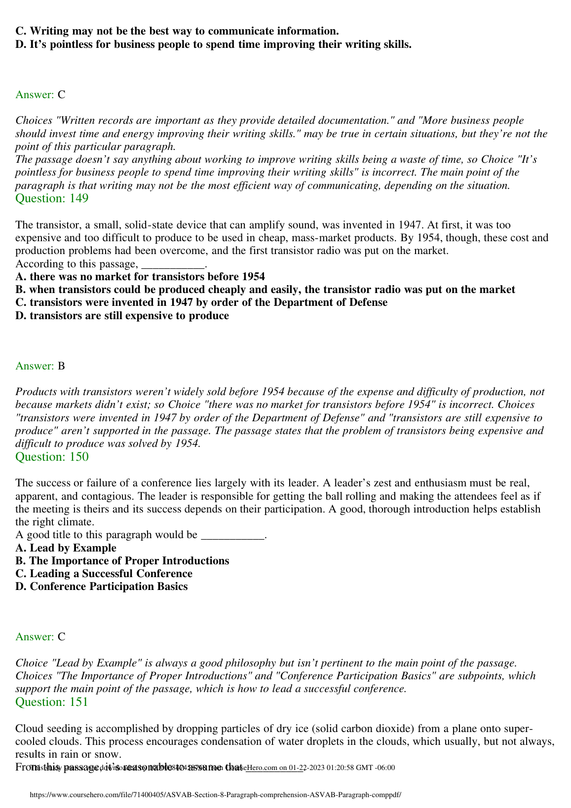 ASVAB Paragraph comp Section 8: Paragraph comprehension