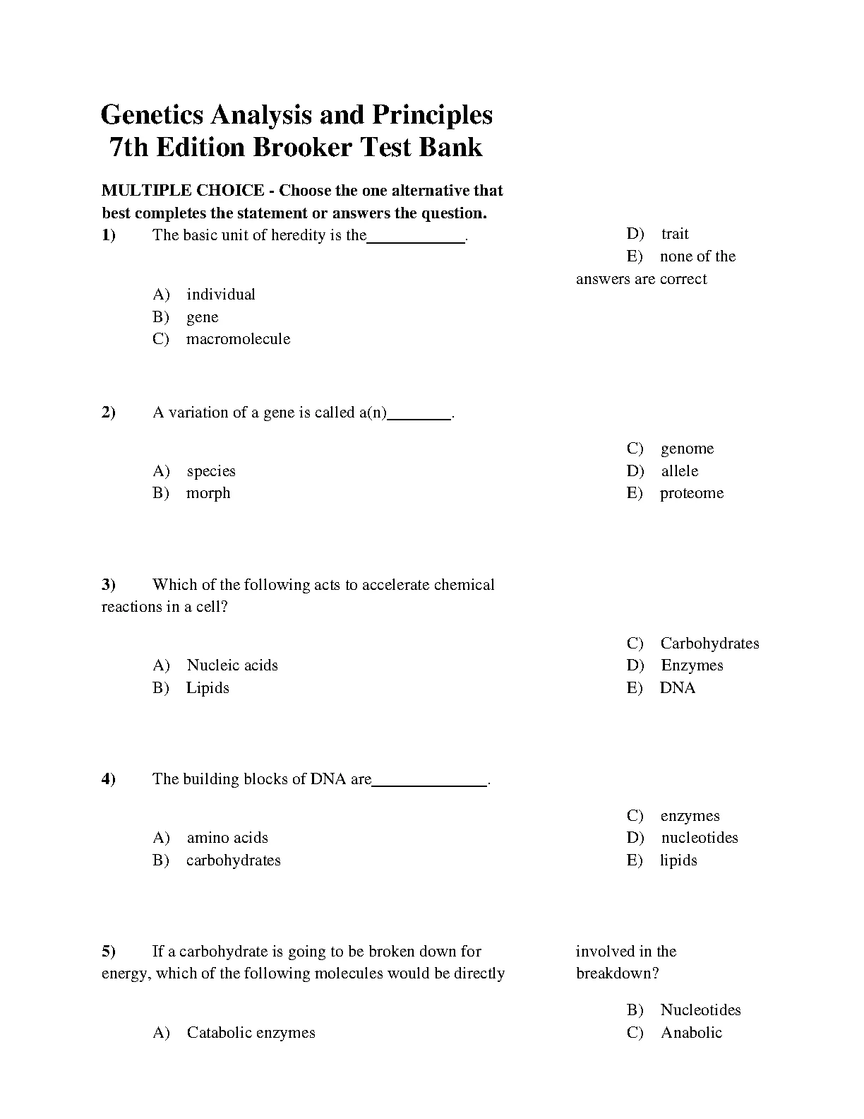 Test Bank For Genetics Analysis and Principles, 7th Edition Brooker