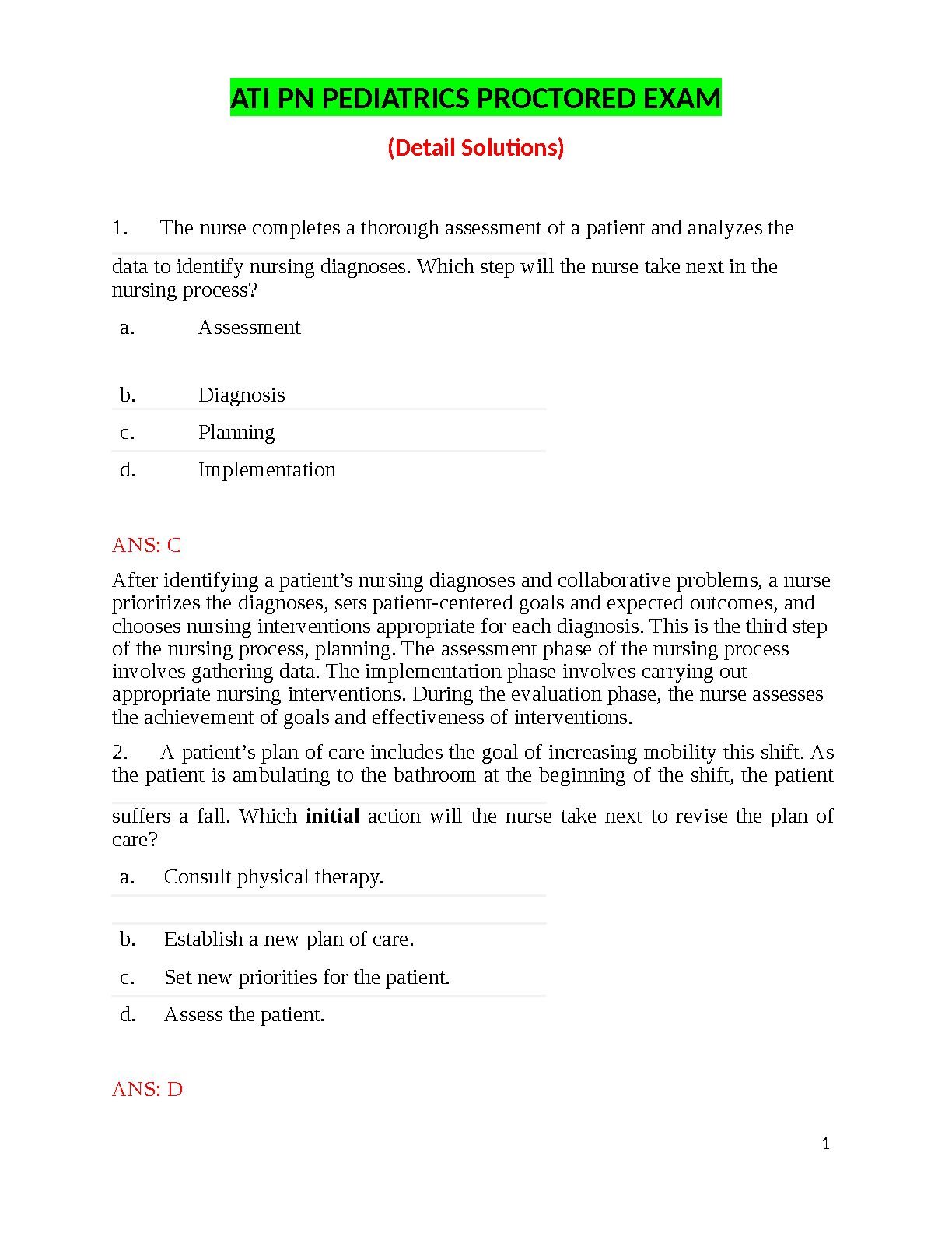 ATI PN PEDIATRICS PROCTORED EXAM 2024<...