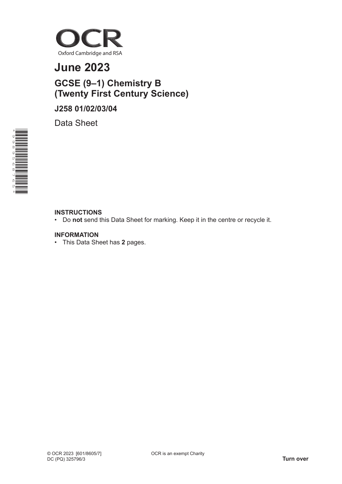 AQA GCSE OCR CHEMISTRY B INSERT 2023 (J258 01-02-03-04)