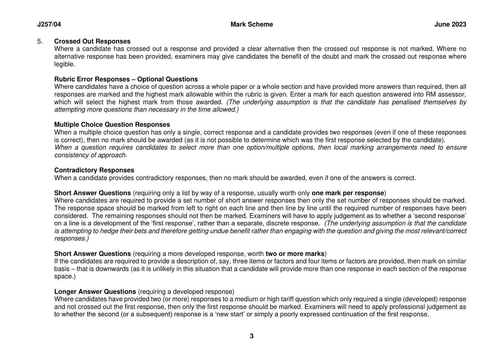 AQA GCSE OCR BIOLOGY B MARK SCHEME PAPER 4 2023 J257-04: Depth in Biology (Higher Tier)