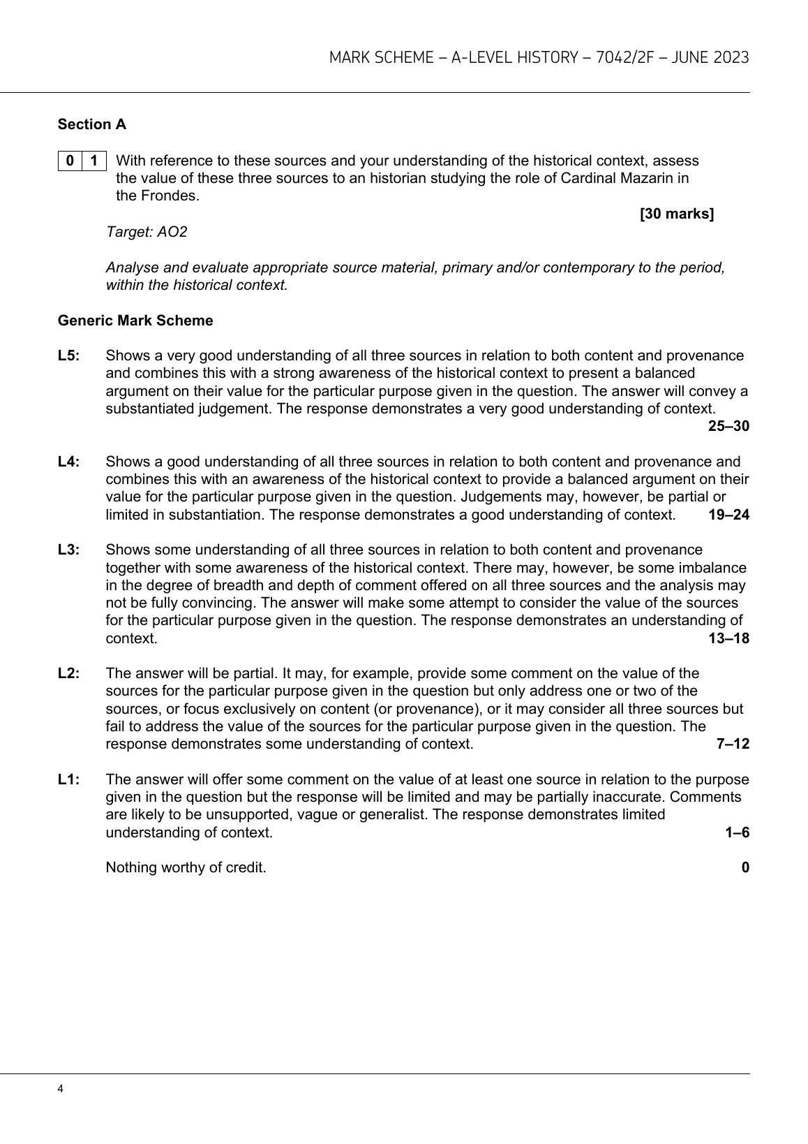 2023 AQA A LEVEL HISTORY MARK SCHEME PAPER 2F(7042/2F;THE SUN KING:LOUISXIV,FRANCEANDEUROPE).