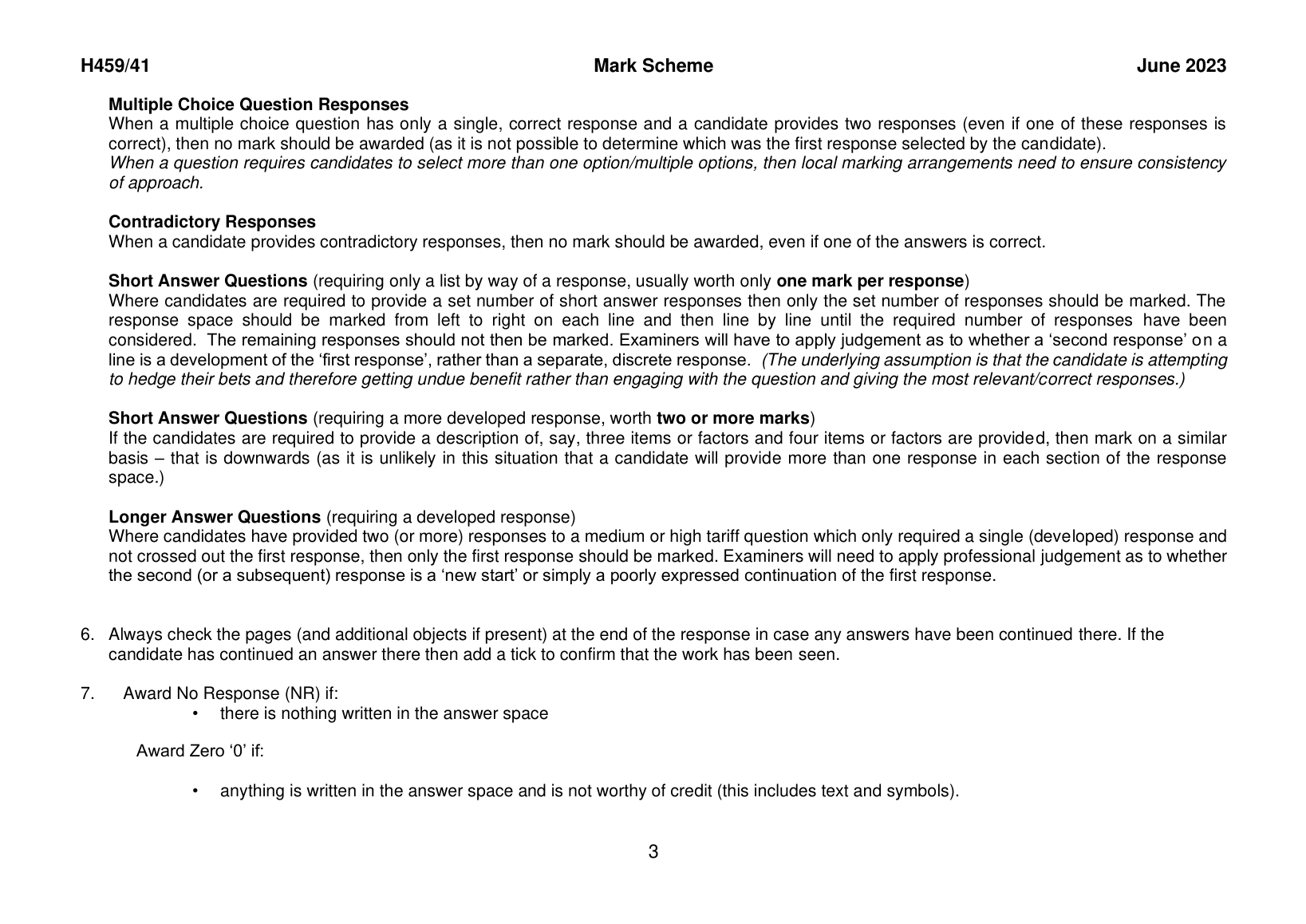 0CR GCE A LEVEL DRAMA AND THEATRE PAPER 41 MARK SCHEME 2023 (H459/41)