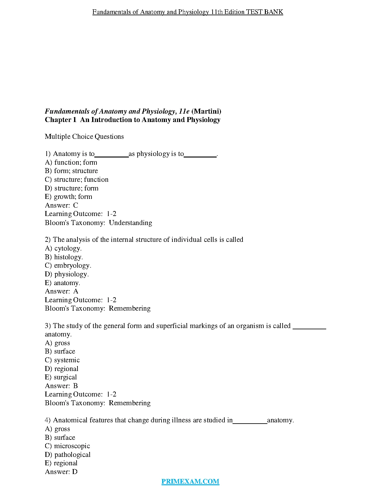 TEST BANK FOR FUNDAMENTALS OF ANATOMY & PHYSIOLOGY 11th Edition by MARTINI