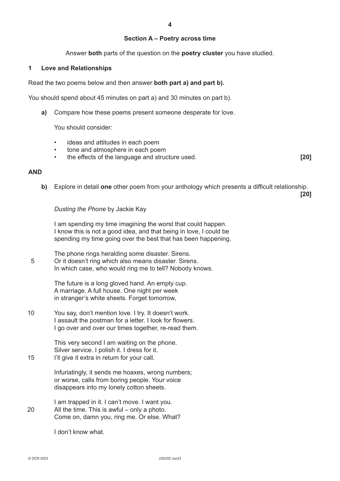 OCR GCSE ENGLISH LITERATURE QUESTION PAPER 2 2023 (J352/02: Exploring poetry and Shakespeare)