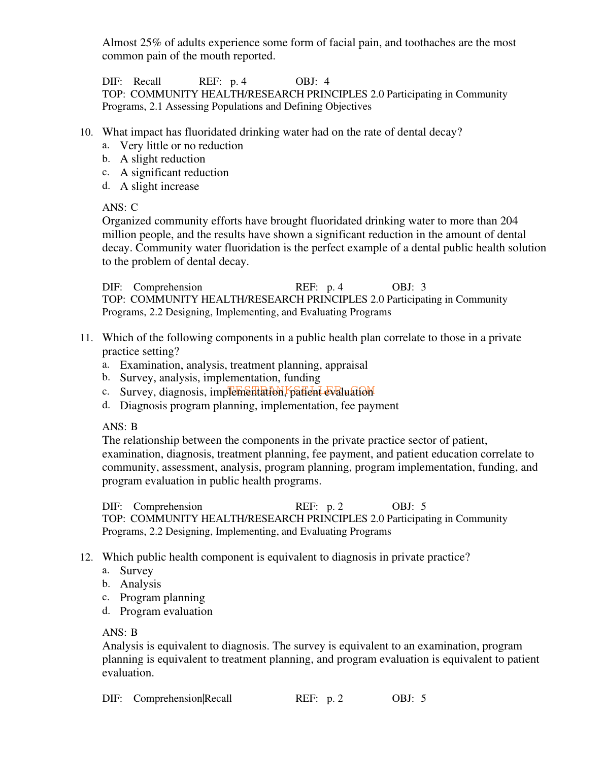 TEST BANK FOR COMMUNITY ORAL HEALTH PRACTICE FOR THE DENTAL HYGIENIST 4TH EDITION by Christine French BeattyÂ