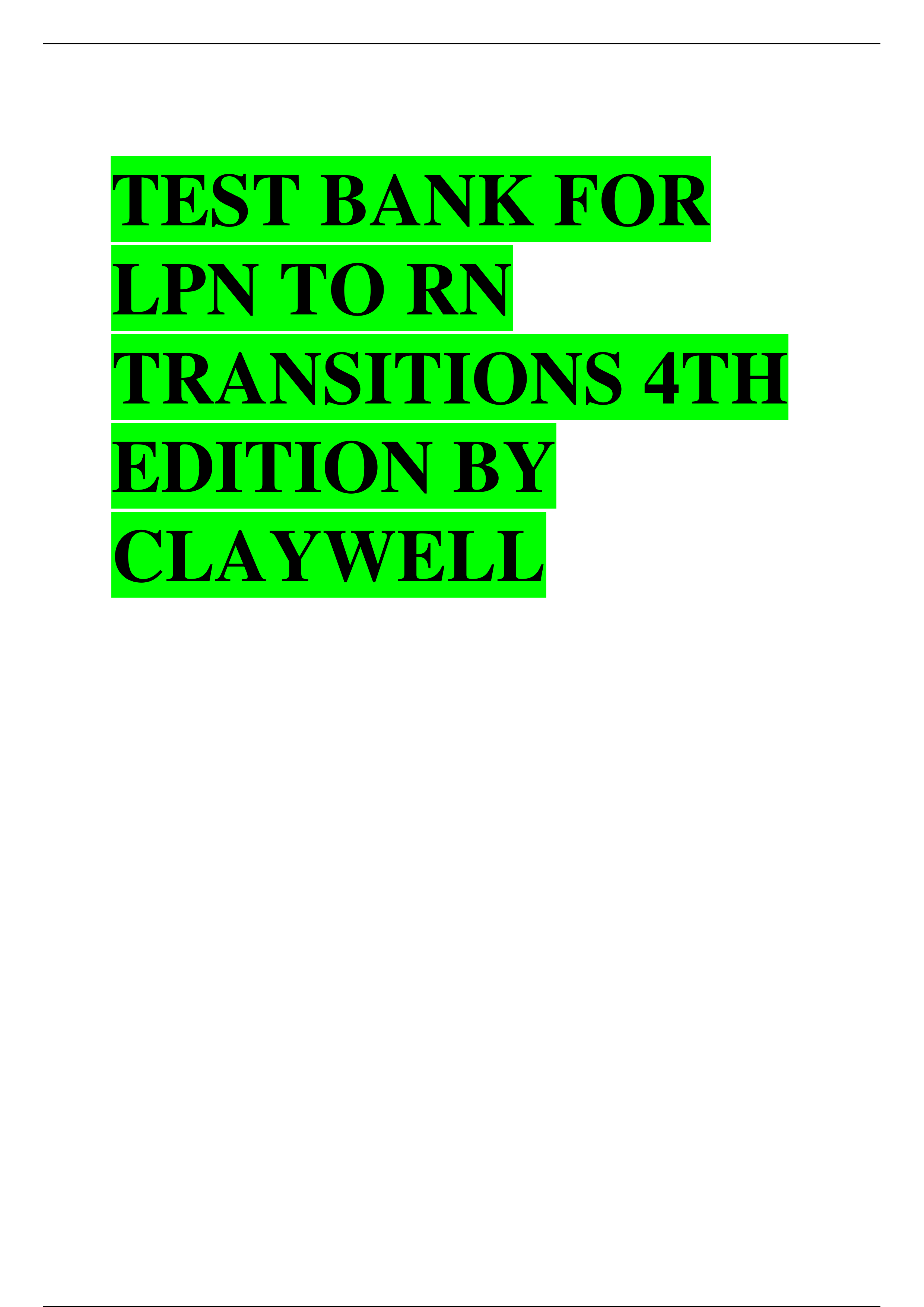 Test Bank For lpn to rn transitions 4th edition by Lora Claywell