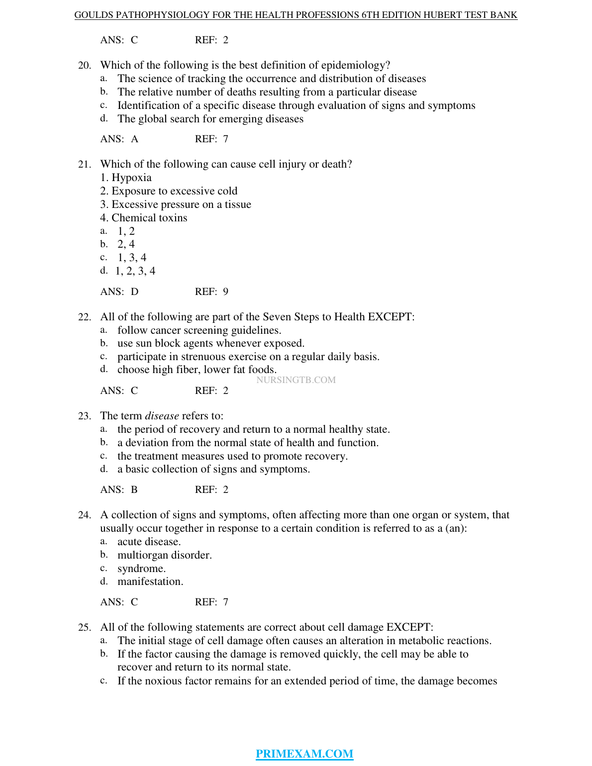 TEST BANK FOR GOULDS PATHOPHYSIOLOGY FOR THE HEALTH PROFESSIONS 6TH EDITION by by Robert J. Hubert