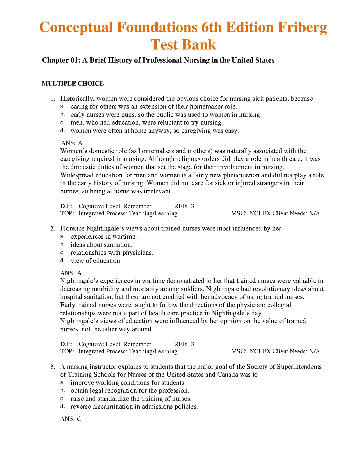 Test Bank For Conceptual Foundations 6th Edition by Elizabeth E. Friberg