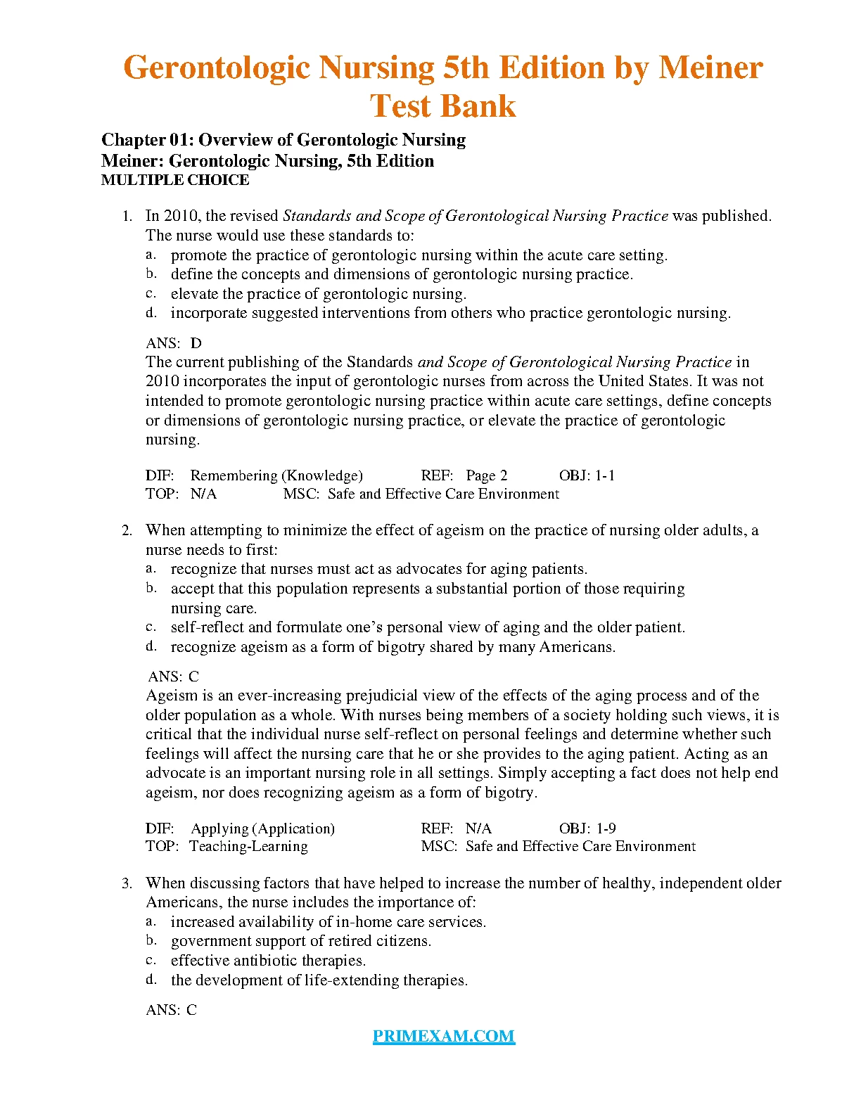 Test Bank For Gerontologic Nursing 5th Edition by Sue E. Meiner