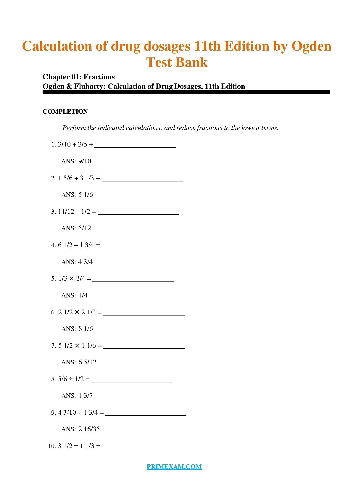 Test Bank For Calculation of drug dosages 11th Edition by OgdenÂ