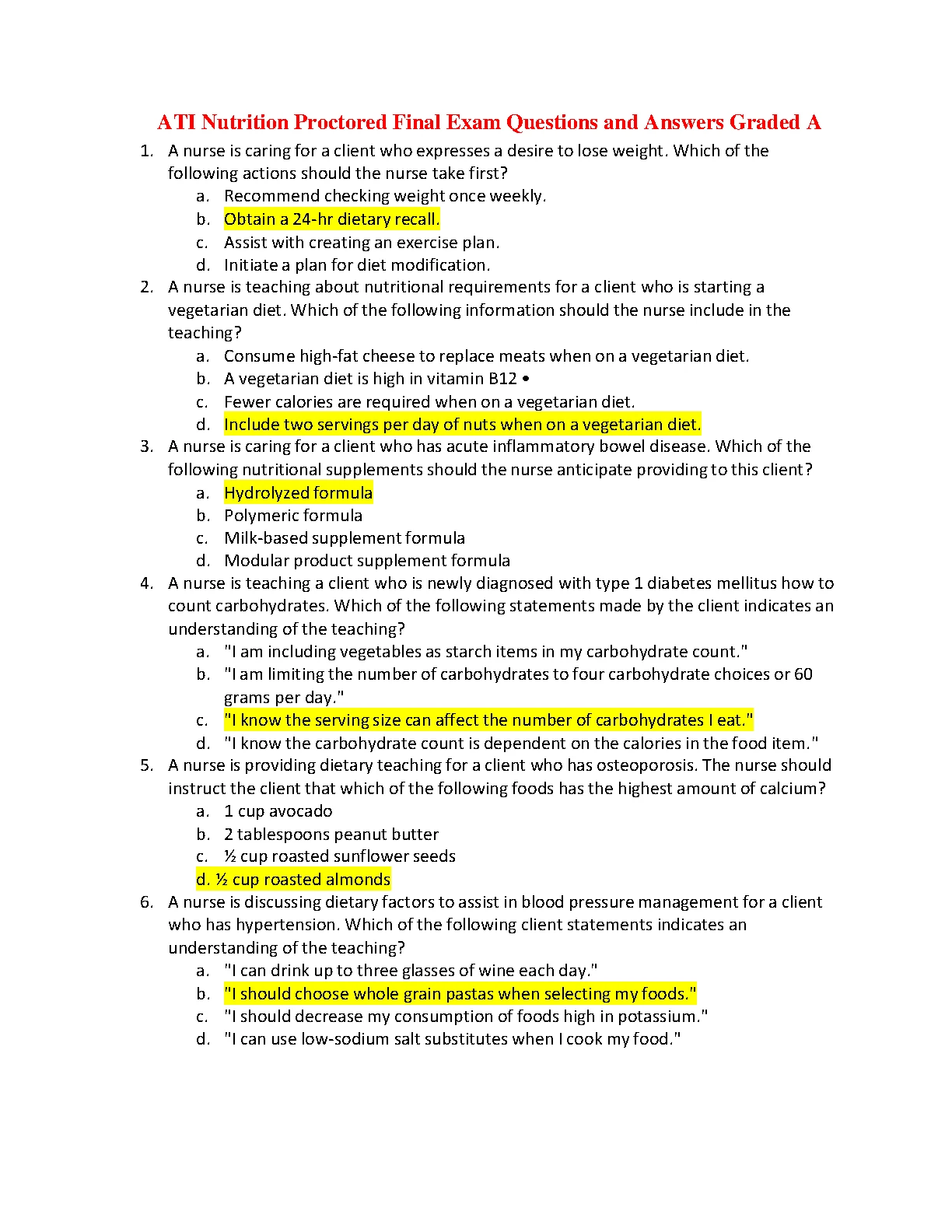 ATI Nutrition Proctored Final Exam 2024 Questions and Answers Â