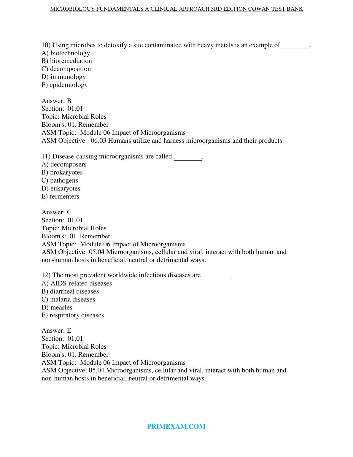 Test Bank For Microbiology Fundamentals: A Clinical Approach, 3rd Edition by Marjorie Kelly Cowan, Heidi Smith