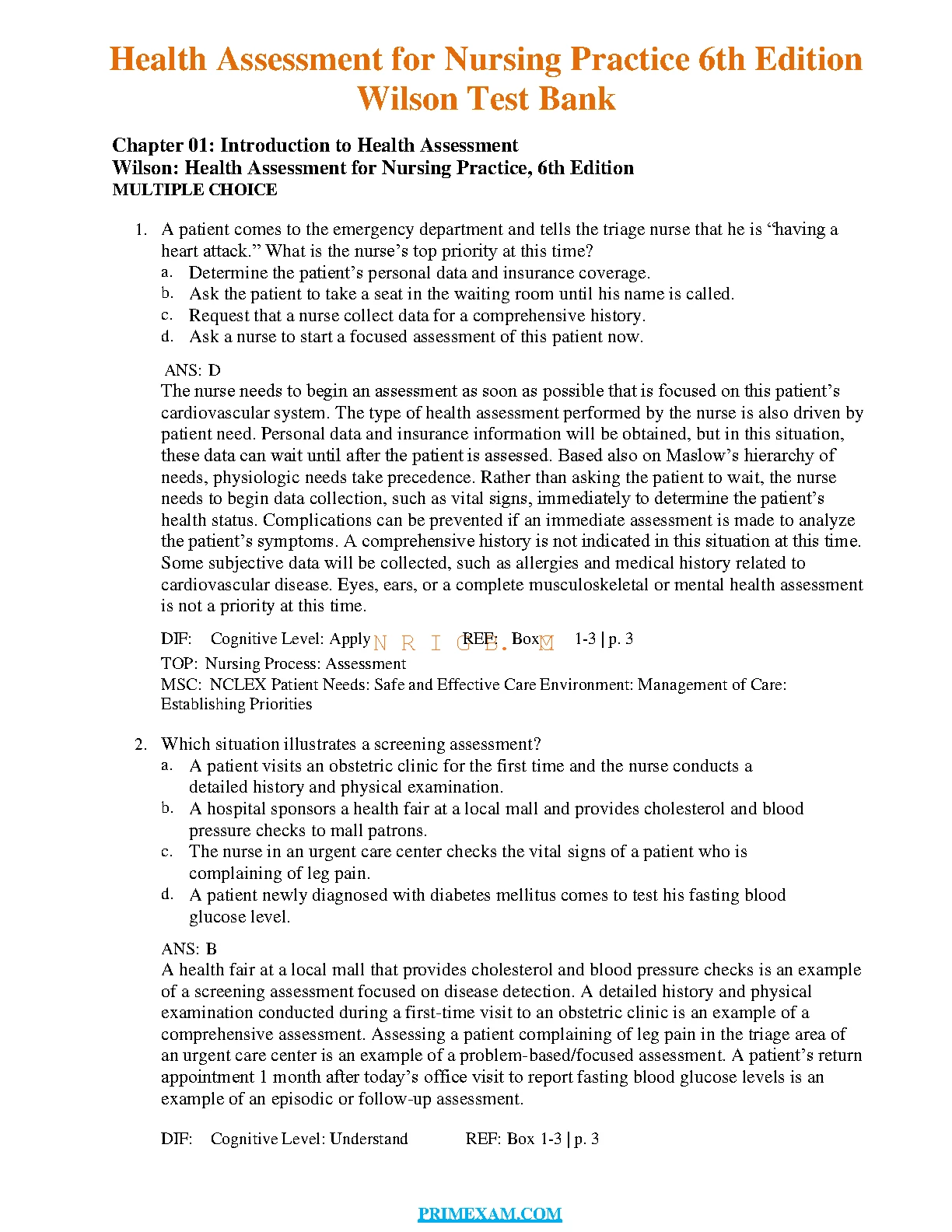 Test Bank For Health Assessment for Nursing Practice 6th Edition by Susan Fickertt Wilson, Jean Foret Giddens