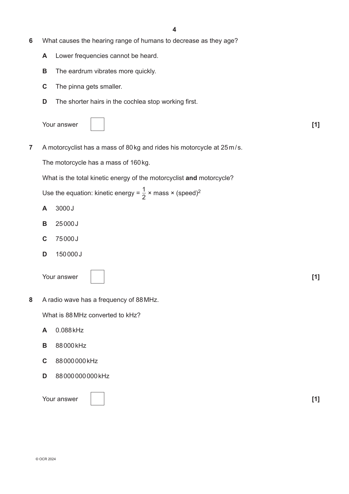 2024 OCR GCSE Physics A Paper 4 (J249/04: Higher Tier)
