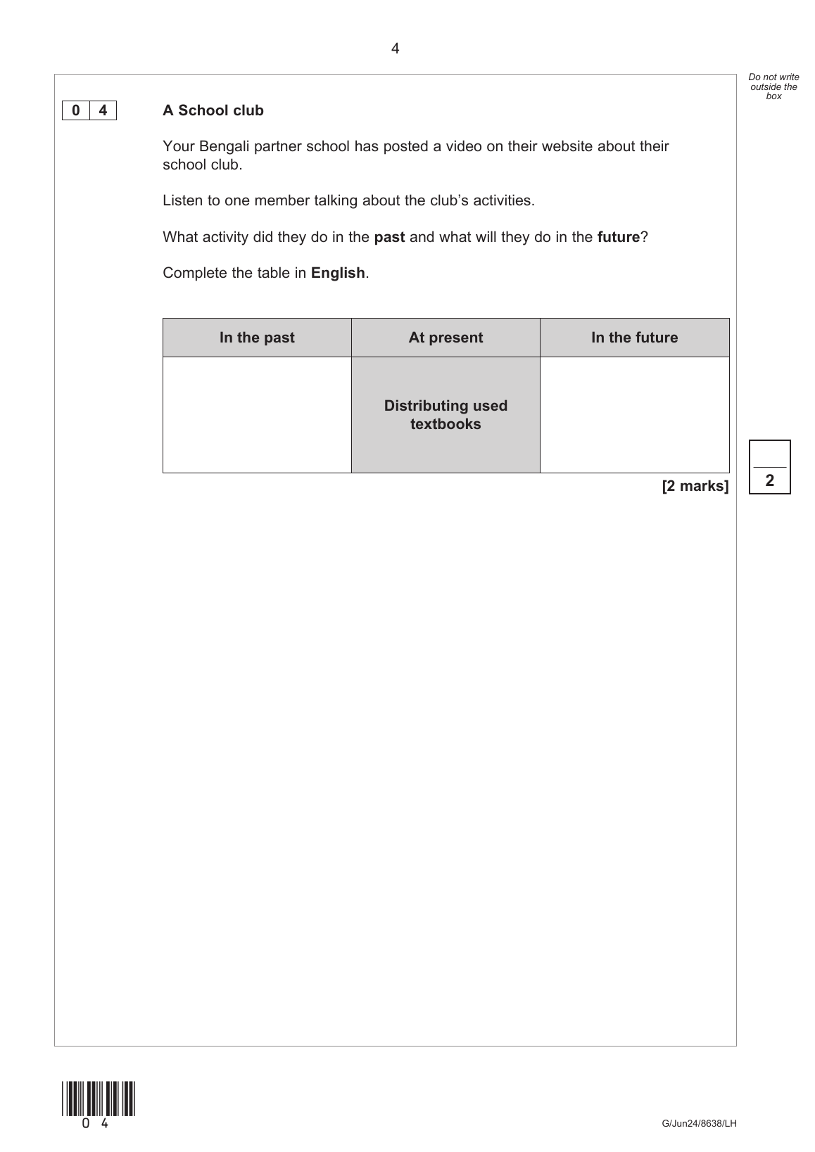 2024 AQA GCSE BENGALI Paper 1 Listening QP(8638/LH:Higher Tier)