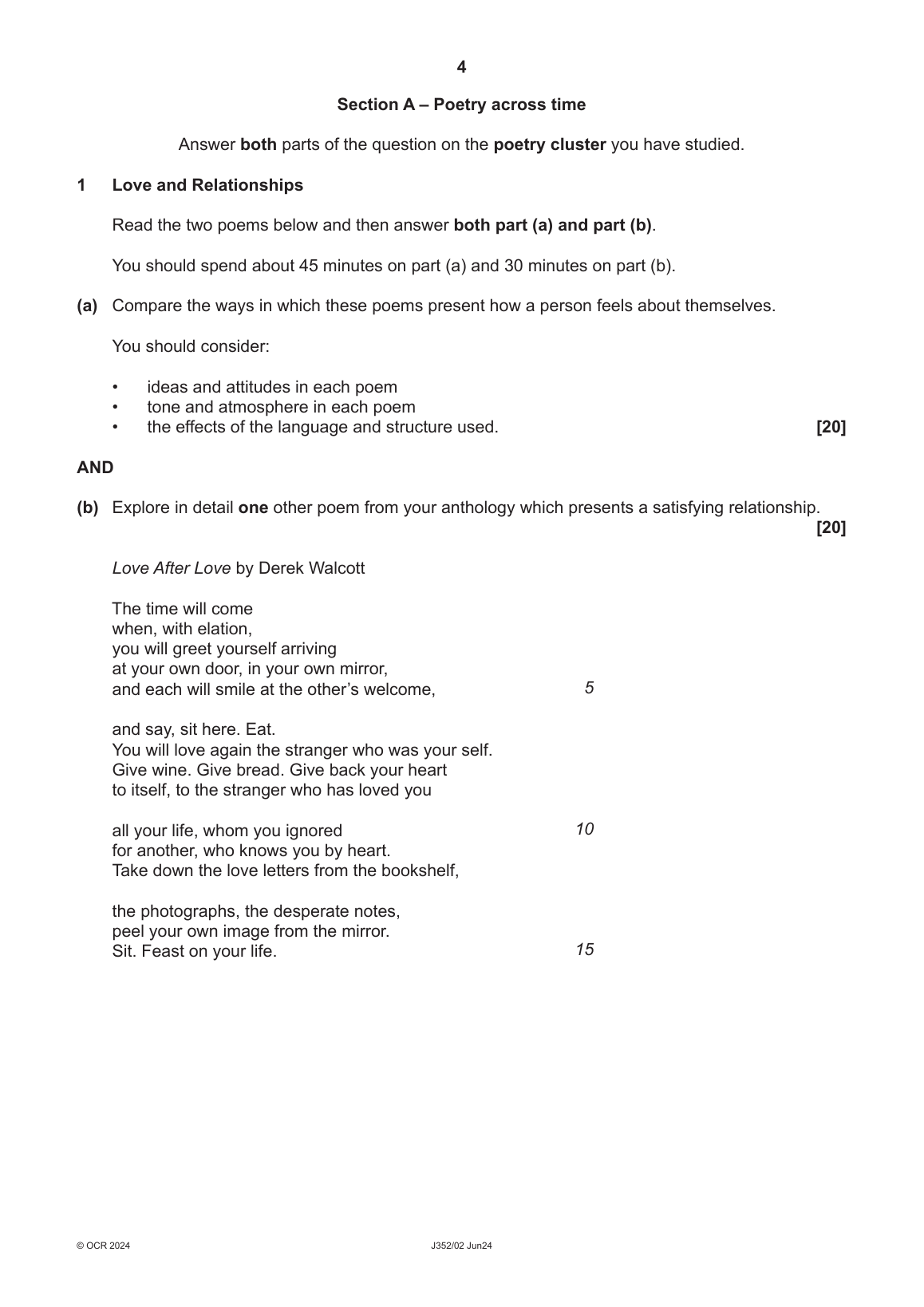 2024 OCR GCSE English Literature Paper 2 (J352/02: Exploring poetry and Shakespeare )