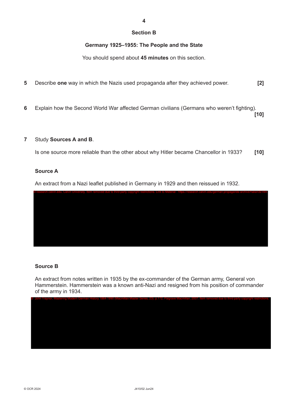 2024 OCR GCSE History A Paper 2 (J410/02 :International Relations: the changing international order 1918–1975 with Germany 1925–1955: The People and the State)