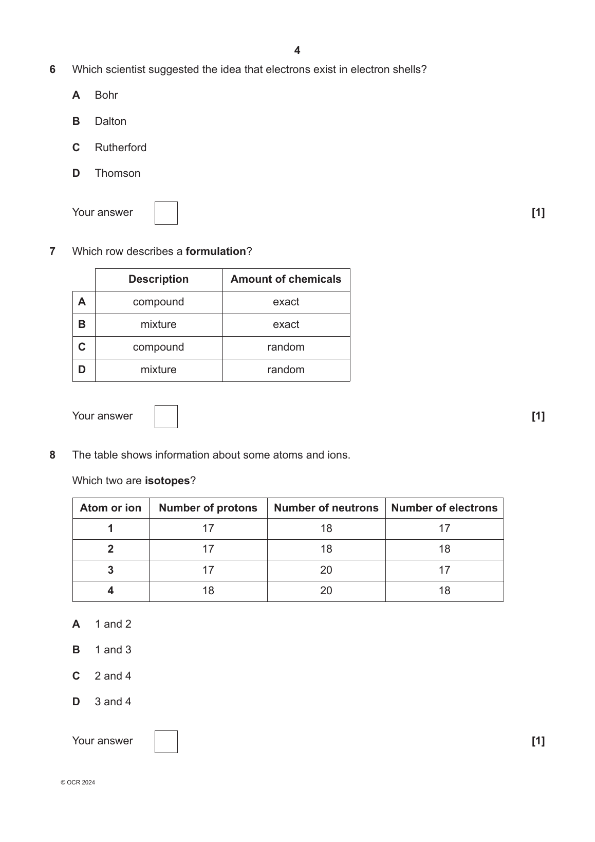 2024 0CR GCSE Chemistry A Paper 1 (J248/01: Foundation Tier)