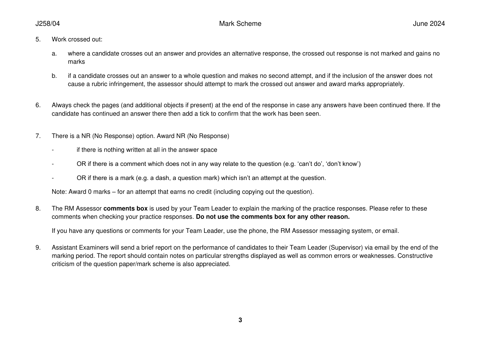2024 0CR GCSE Chemistry B Mark Scheme Paper 4 (J258/04: Depth in Chemistry Higher Tier)