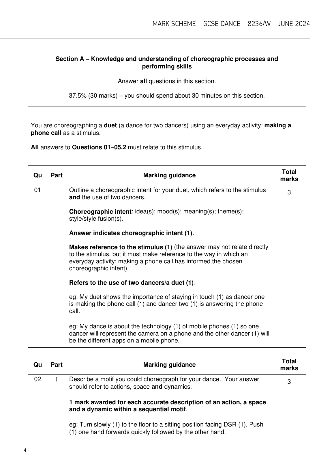 2024 AQA GCSE DANCE COMPONENT 2 MARK SCHEME(8236/W:Dance appreciation)