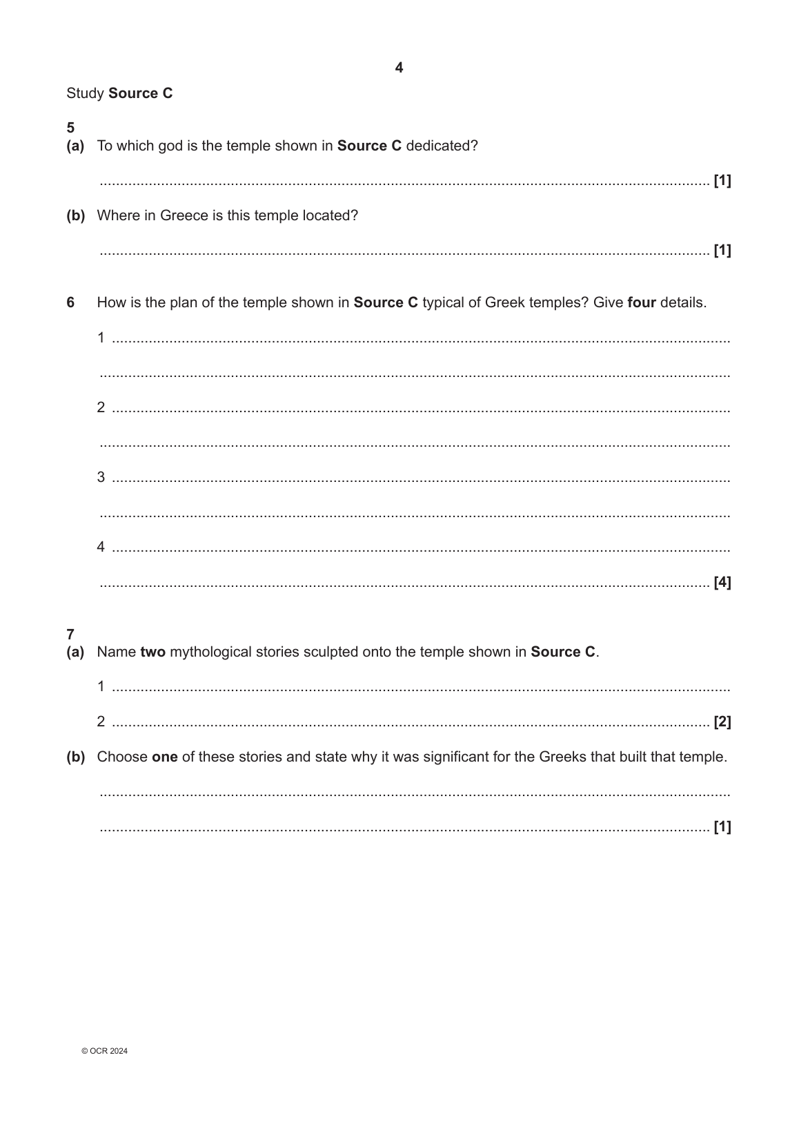2024 0CR GCSE Classical Civilisation Paper 11 (J199/11: Myth and religion)