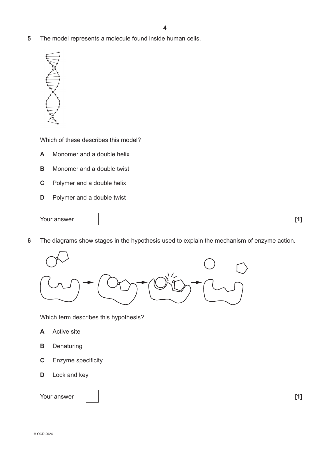 OCR GCSE COMBINED SCIENCE A QUESTION PAPER 1 2024 (J250/01: Biology (Foundation Tier)). Â