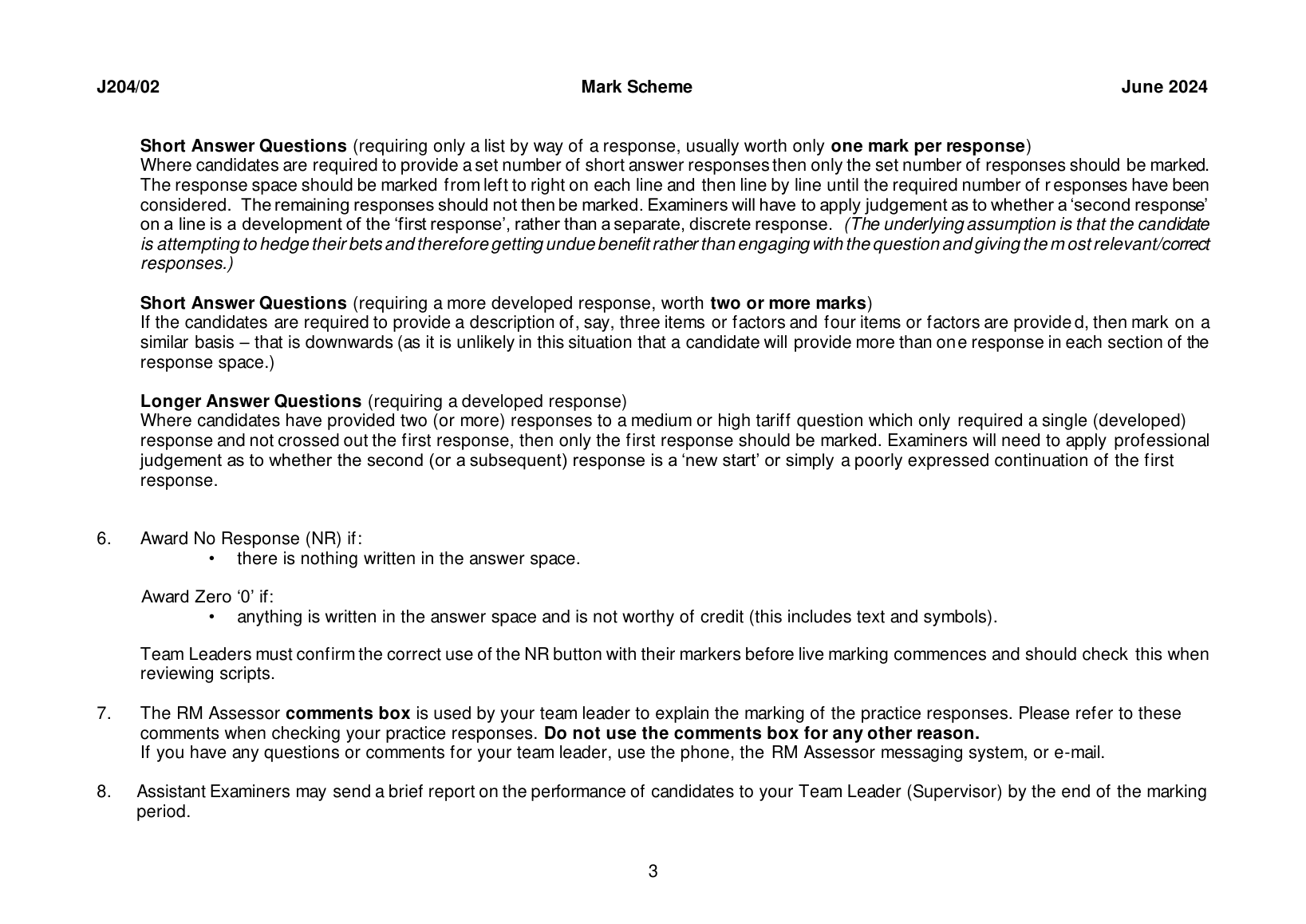 OCR GCSE BUISNESS PAPER 2 MARK SCHEME 2024 (J204/02) Business 2: J204/02:  operations, finance and influences on business