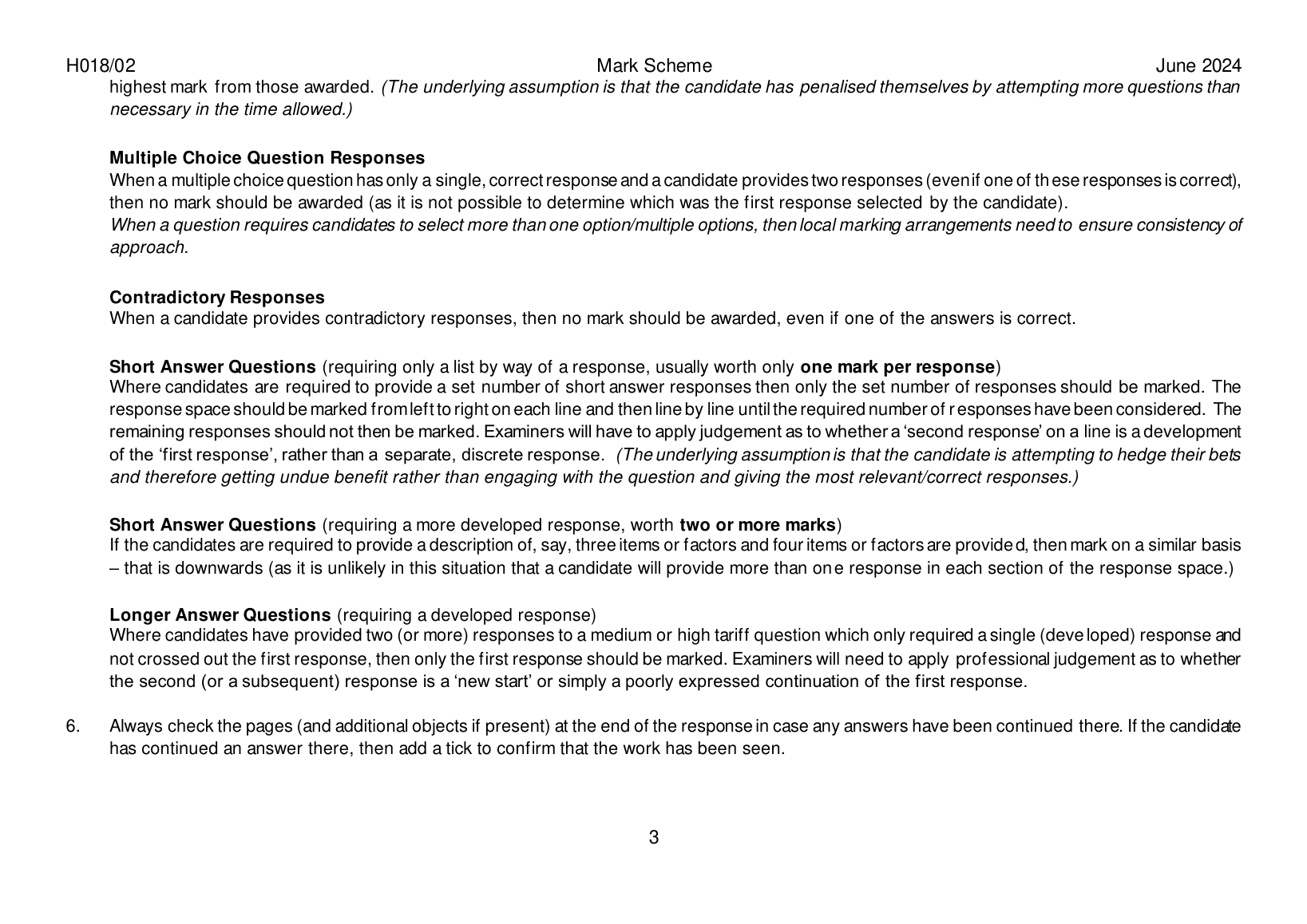 OCR GCE LAW AS LEVEL MARK SCHEME 2024(H018/02:LAW MAKING AND THE LAW OF TORT)