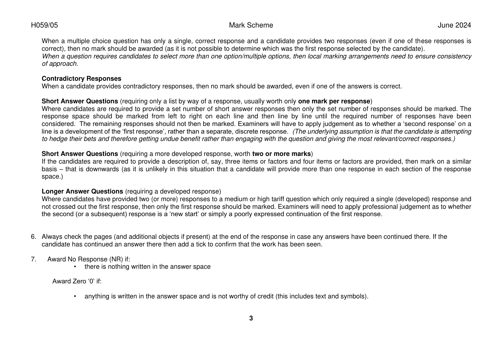 OCR GCE DRAMA AND THEATRE AS LEVEL MARK SCHEME 2024(H059/05:EXPOLORING PERFORMANCE)