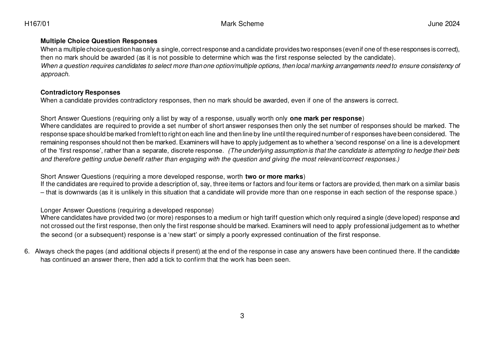OCR GCE PSYCHOLOGY AS LEVEL MARK SCHEME 2024(H167/01:RESEARCH METHODS)