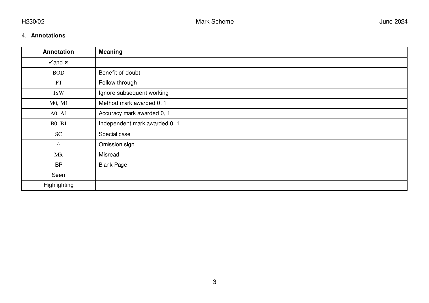 OCR GCE MATHEMATICS A PAPER 2 AS LEVEL MARK SCHEME 2024(H230/02:PURE MATHEMATICS AND MECHANICS)