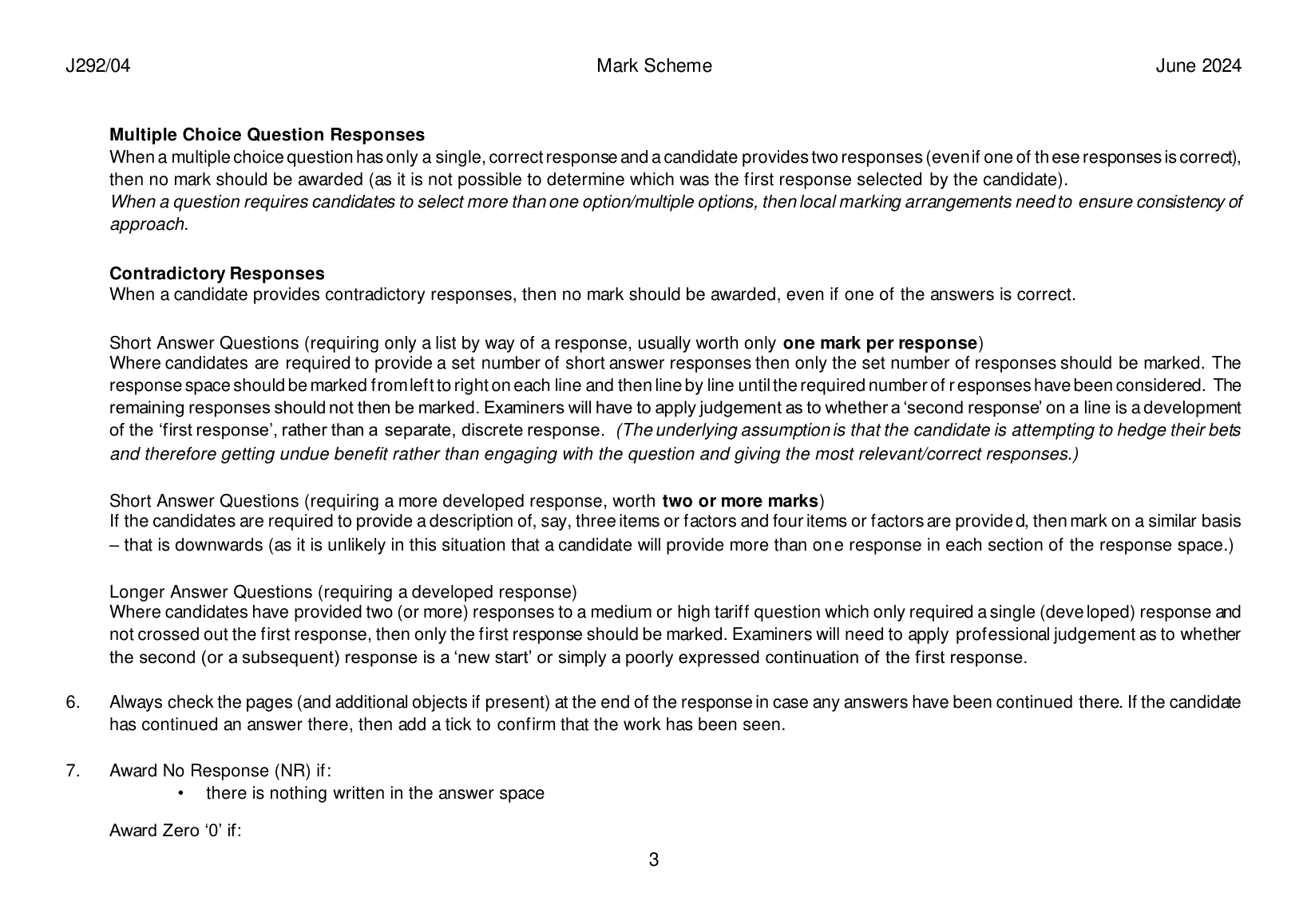 OCR GCSE CLASSICAL GREEK MARK SCHEME PAPER 4 (J292/04: Verse Literature A)