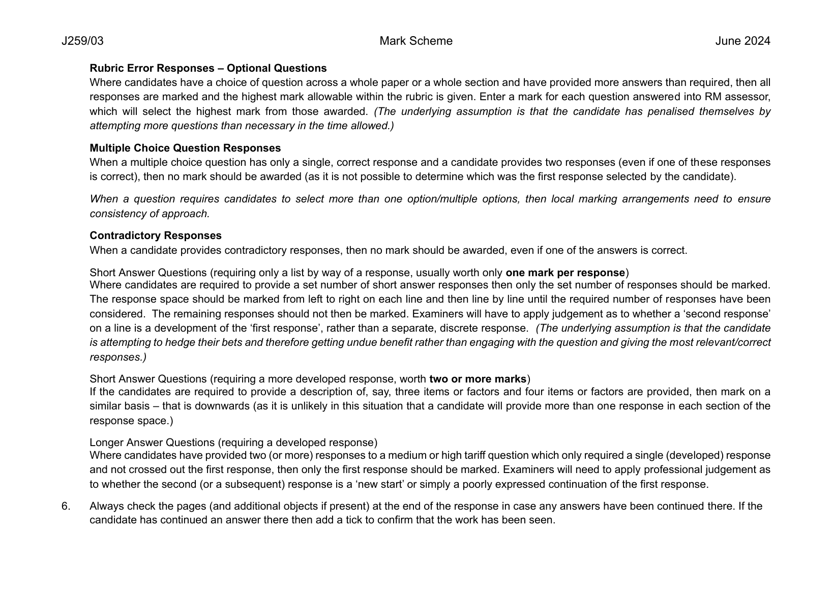 2024 OCR GCSE Physics B Mark Scheme Paper 3 (J259/03: Breadth in physics (Higher Tier))