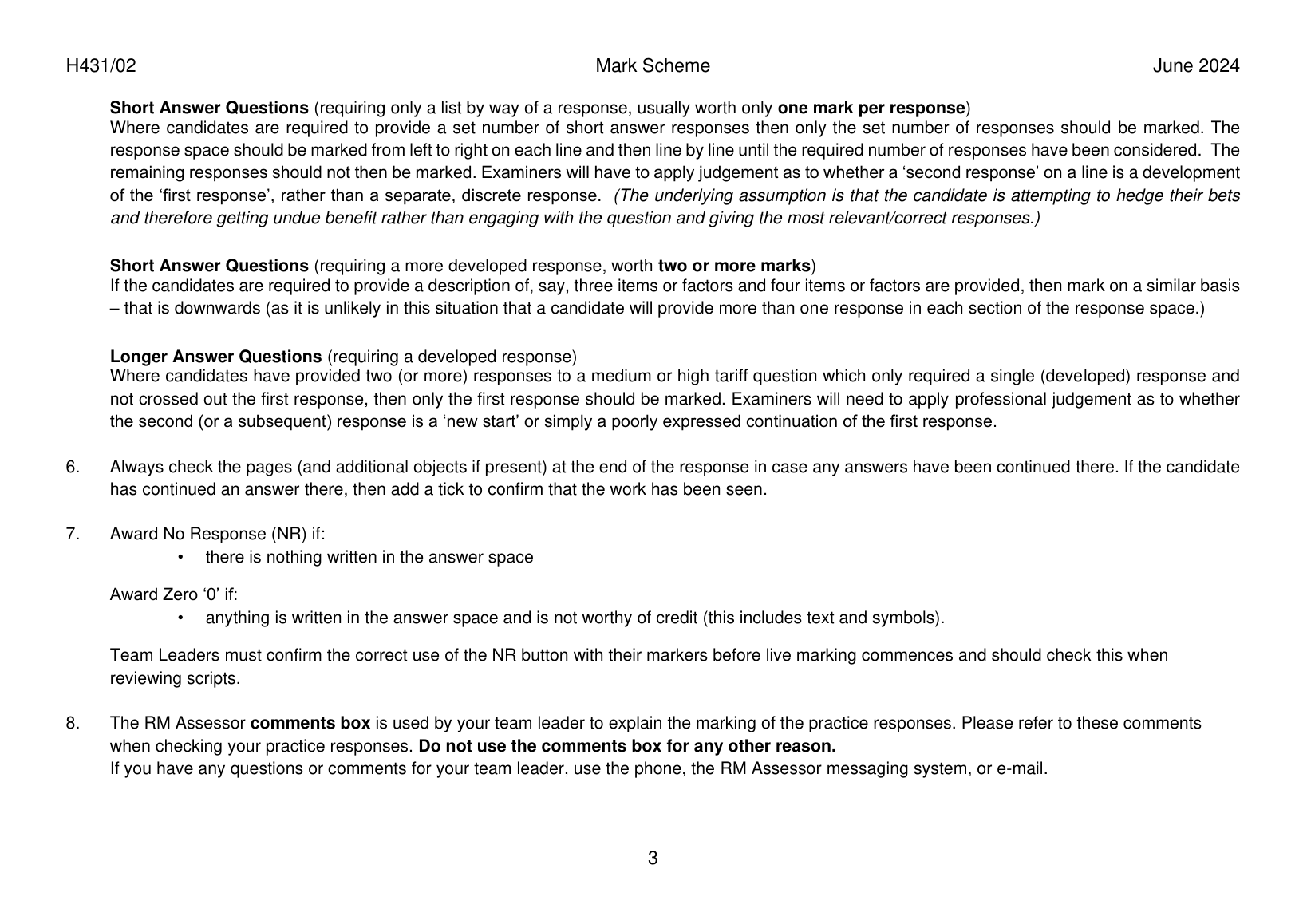 OCR GCE NEW BUSINESS A LEVEL PAPER 2 MARK SCHEME 2024(H431/02:THE UK BUSINESS ENVIRONMENT)
