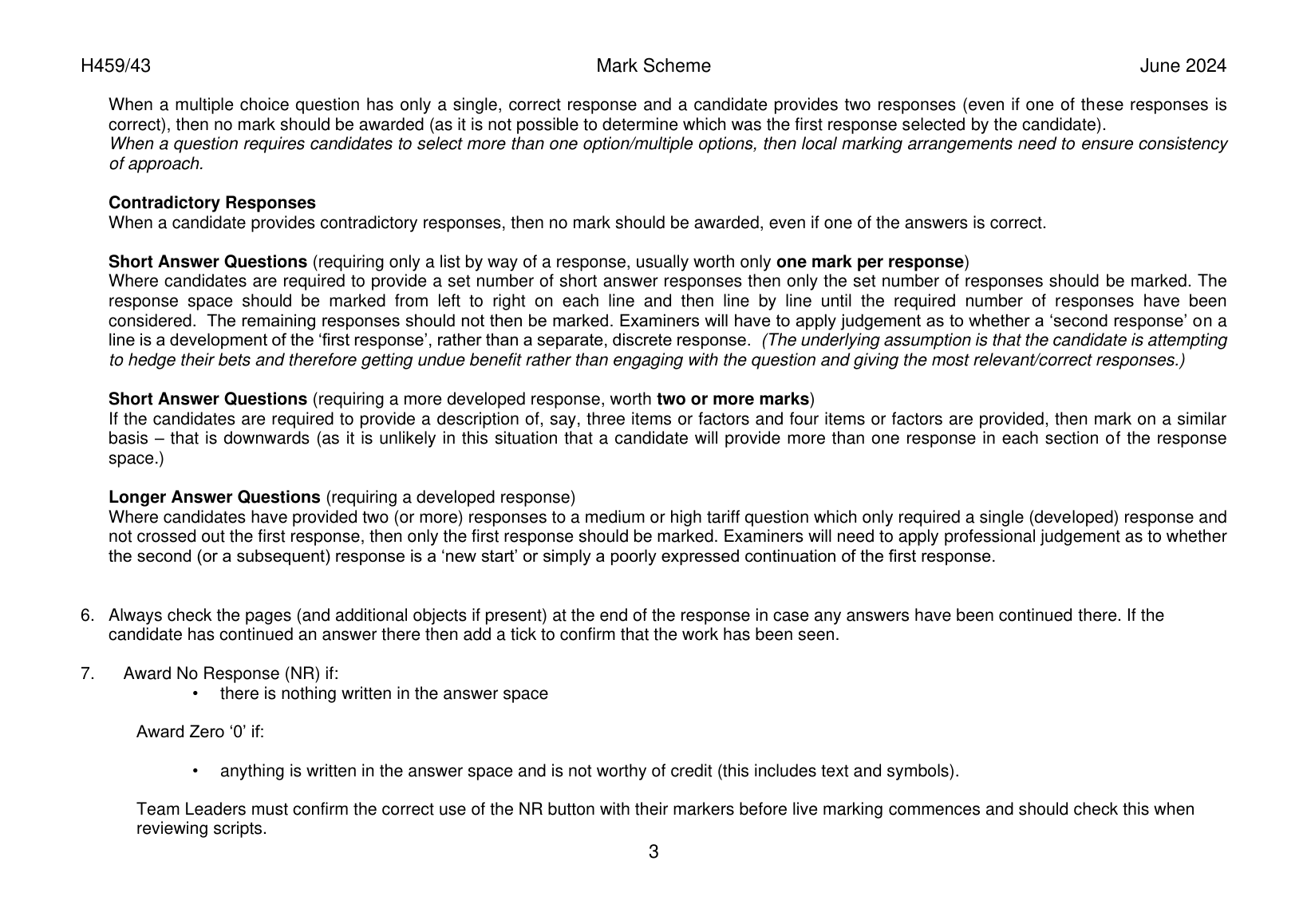 OCR GCE DRAMA AND THEATRE A LEVEL MARK SCHEME 2024(H459/43:DECONSTRUCTING TEXTS FOR PERFORMANCE:EARTHQUAKES IN LONDON)