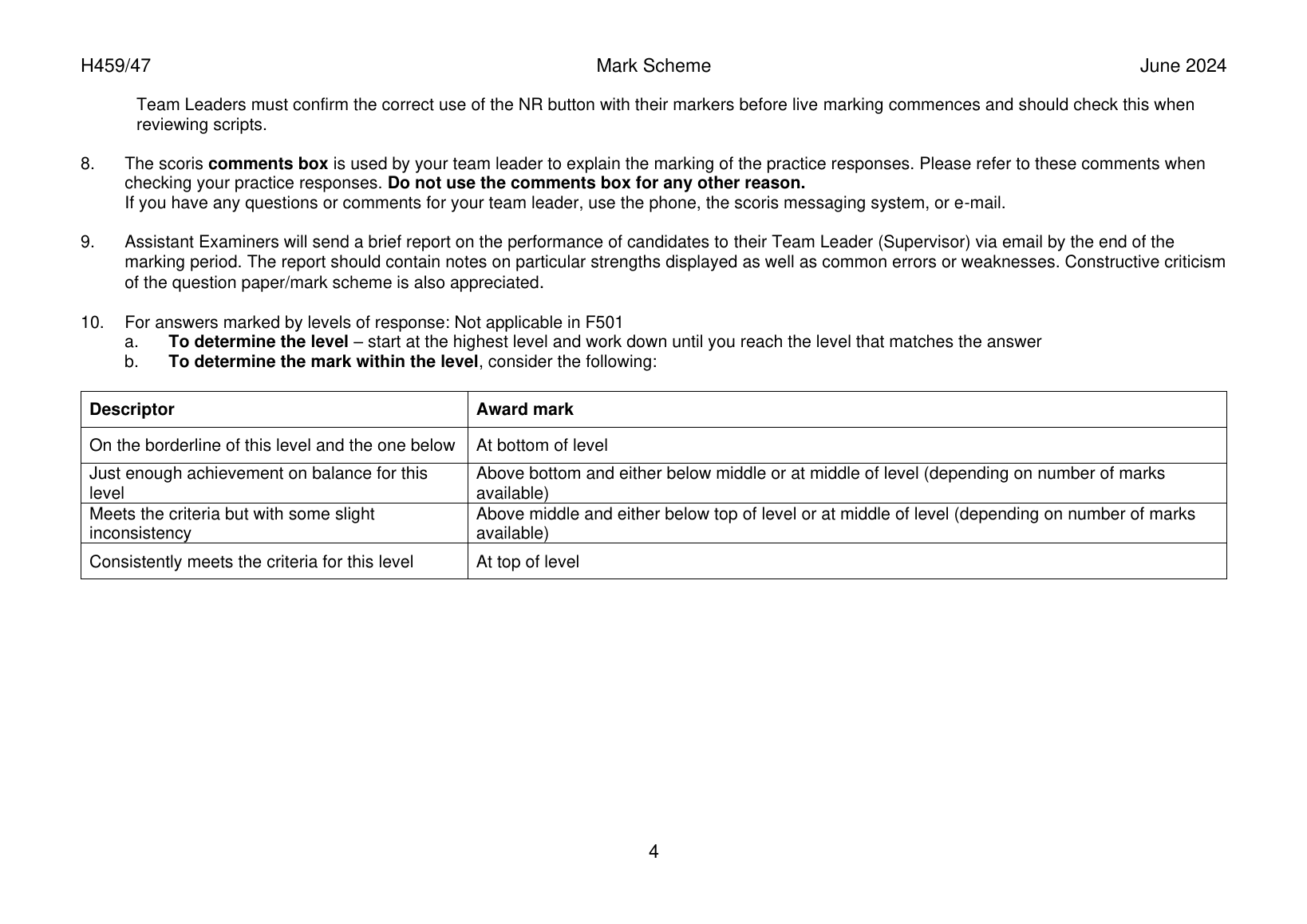 OCR GCE DRAMA AND THEATRE A LEVEL MARK SCHEME 2024(H459/47:DECONSTRUCTING TEXTS FOR PERFORMANCE:THE VISIT)