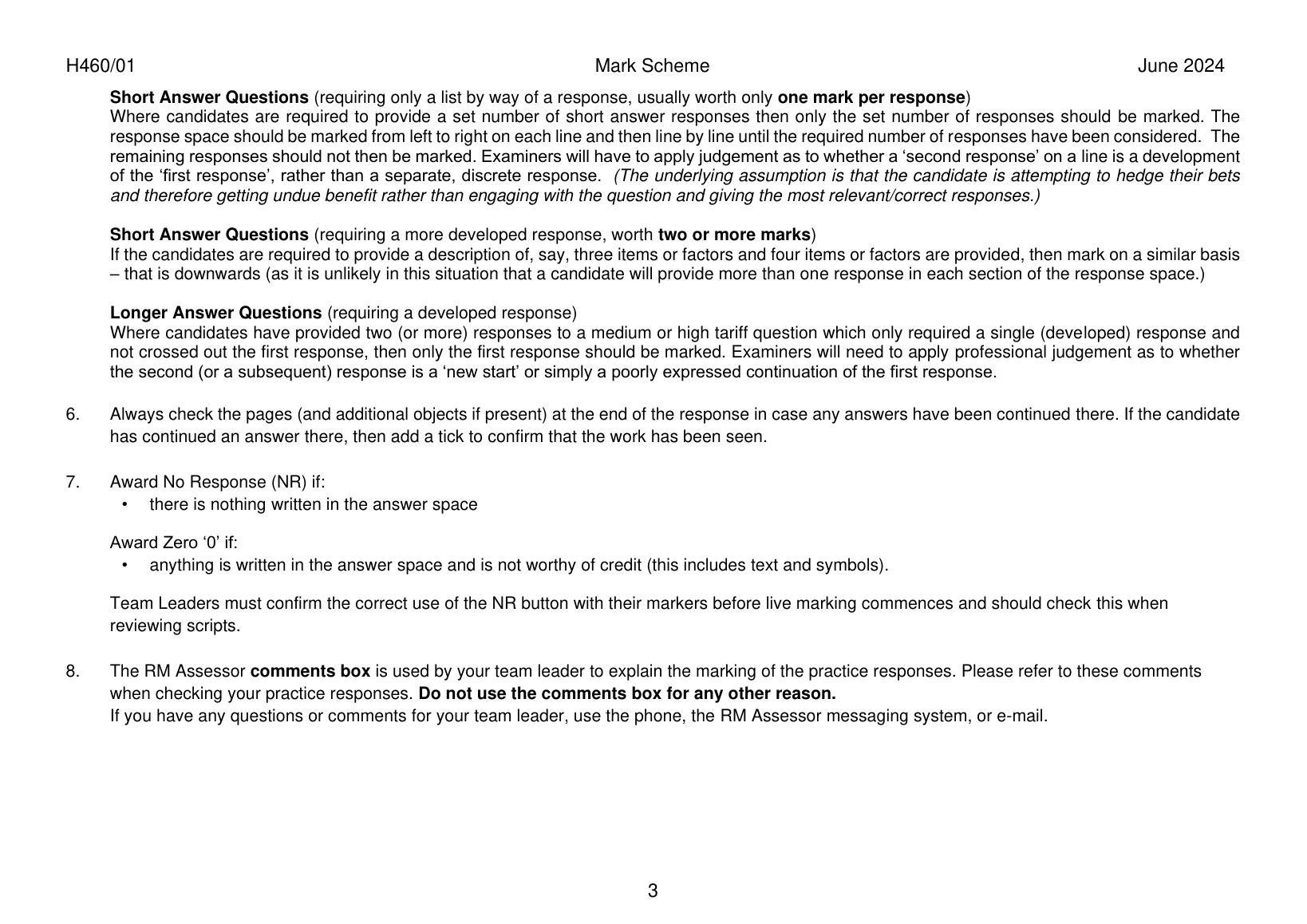 OCR GCE ECONOMICS A LEVEL PAPER 1 MARK SCHEME 2024(H460/01:MICROECONOMICS)