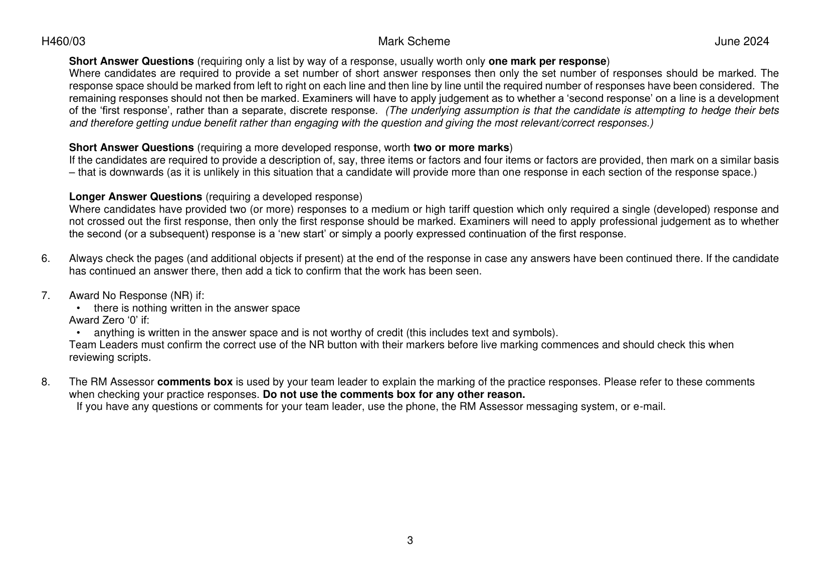 OCR GCE ECONOMICS A LEVEL PAPER 3 MARK SCHEME 2024(H460/03:THEMES IN ECONOMICS)