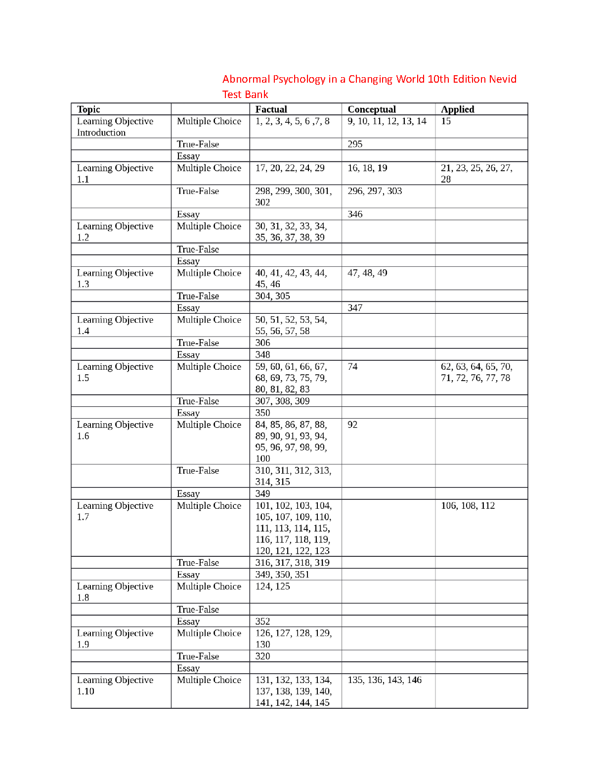 Abnormal Psychology in a Changing World 10th Edition Test Bank by Jeffrey S. Nevid, Spencer A. Rathus, and Aram J. Greene