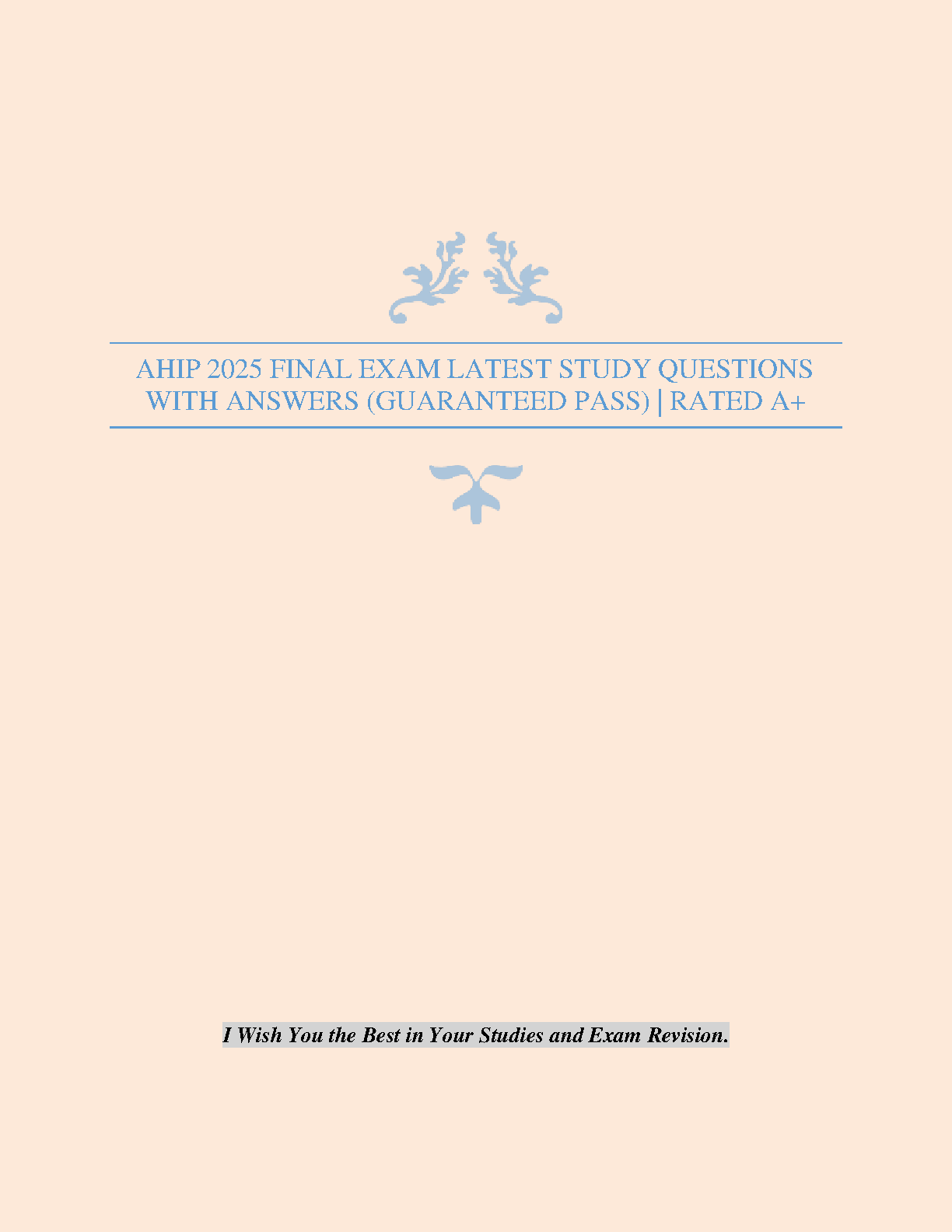 Ace your AHIP 2025 final exam with this comprehensive study guide containing the latest questions and answers. Designed to help students achieve a guaranteed pass and avoid resits. Rated A+ by students.