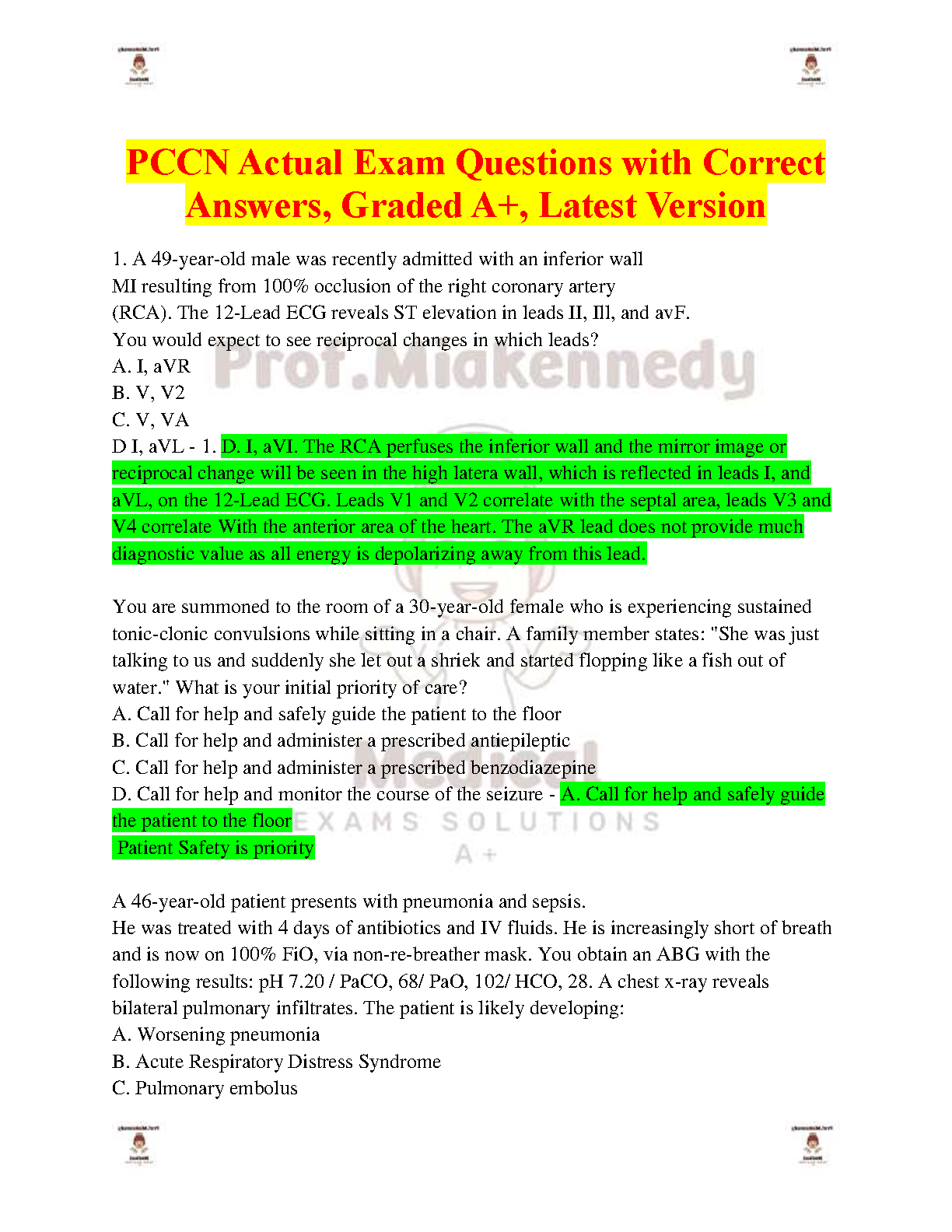 Ace your PCCN exam with this latest edition of practice questions and answers. This comprehensive resource provides detailed explanations and is designed to hel...