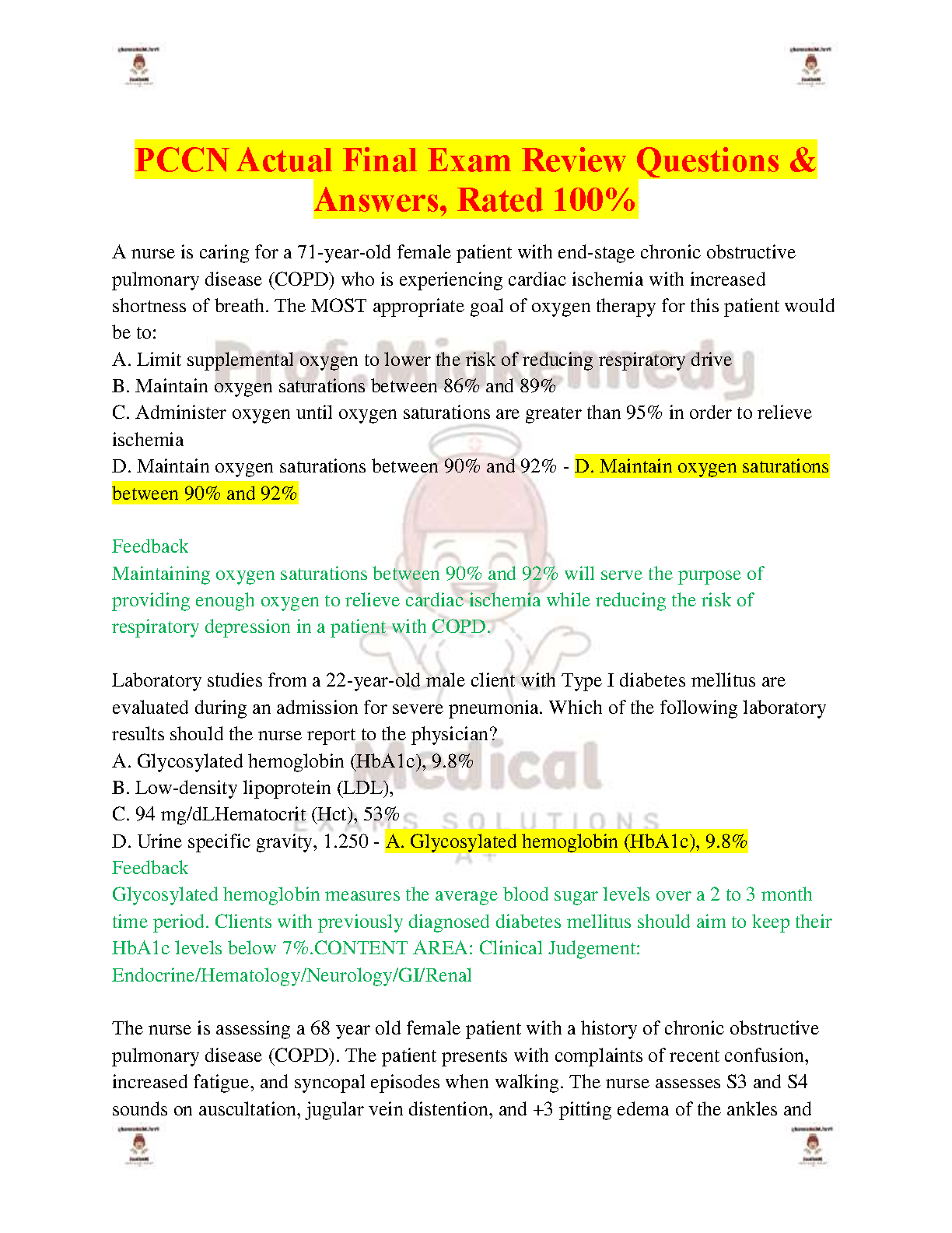 PCCN Actual Final Exam Review Questions & Answers: 100% Pass Rate