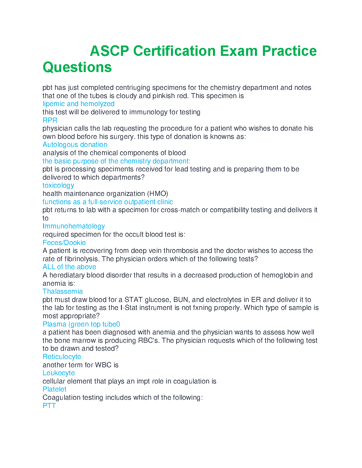 ASCP Certification Exam Practice Questions - 2024/2025 Edition