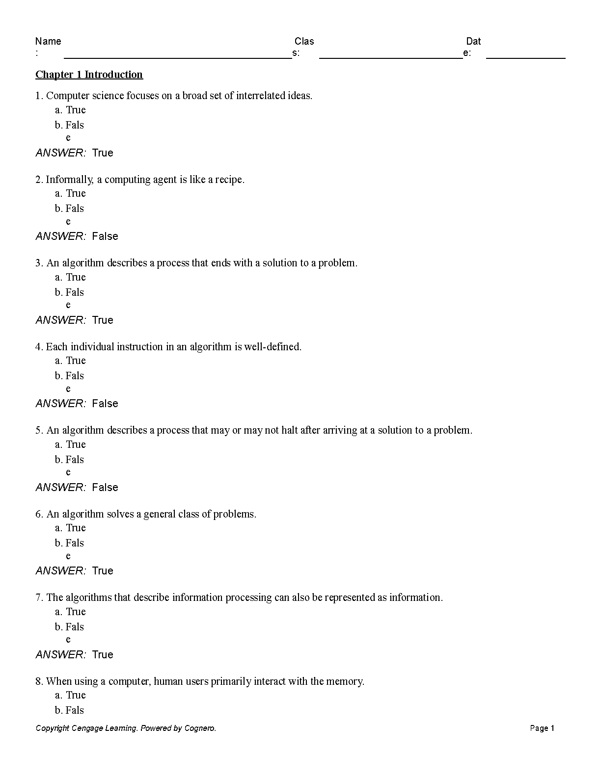Ace your computer science exams with this comprehensive test bank covering Chapter 1, 'Introduction,' of 'Computer Science: An Interdisciplinary Approach'. This...
