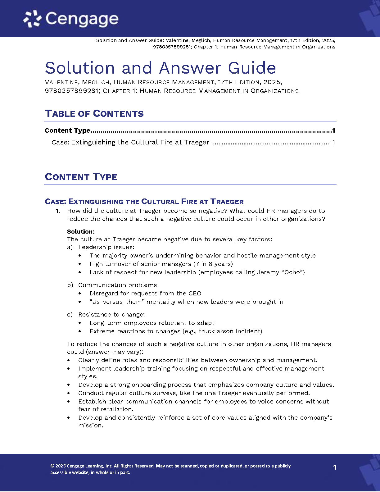 Solution and Answer Guide for Valentine & Meglich's Human Resource Management, 17th Edition, 2025