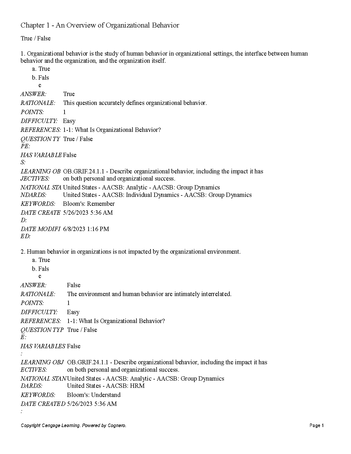Ace your Organizational Behavior exams with this comprehensive test bank, designed to help students pass on their first attempt. This resource covers key concep...