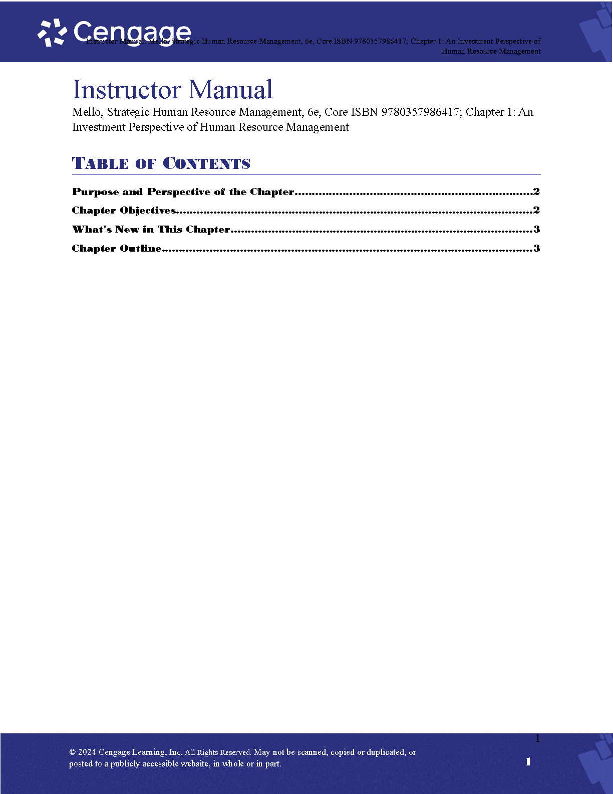 Instructor Manual for Mello's Strategic Human Resource Management, 6th Edition by Jeffery A. Mello