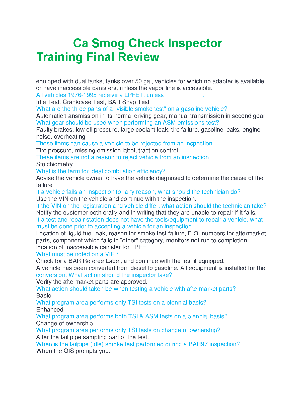 Ca Smog Check Inspector Training Final Review: A Comprehensive Guide for Passing Exams on the First Attempt (2024-2025 Edition)